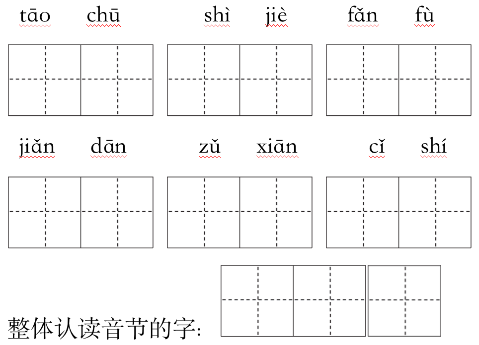 1.拼一拼,写一写,并写出整体认读音节的字。(9分)