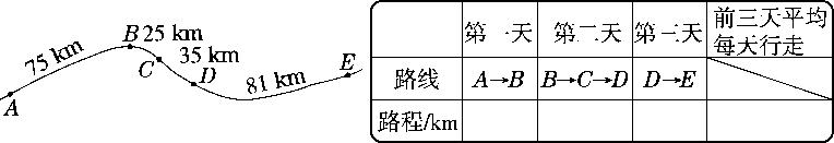 2.张叔叔骑自行车去旅行,下面是他前三天行走的路线。(算一算,填一填)