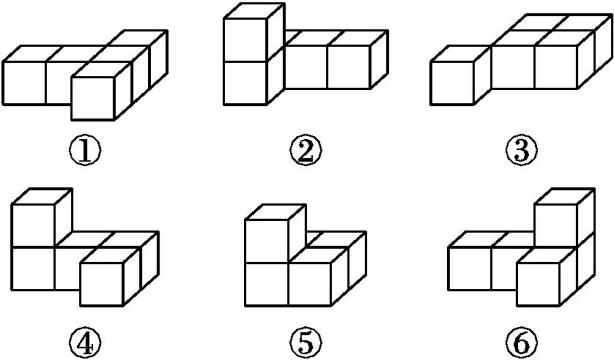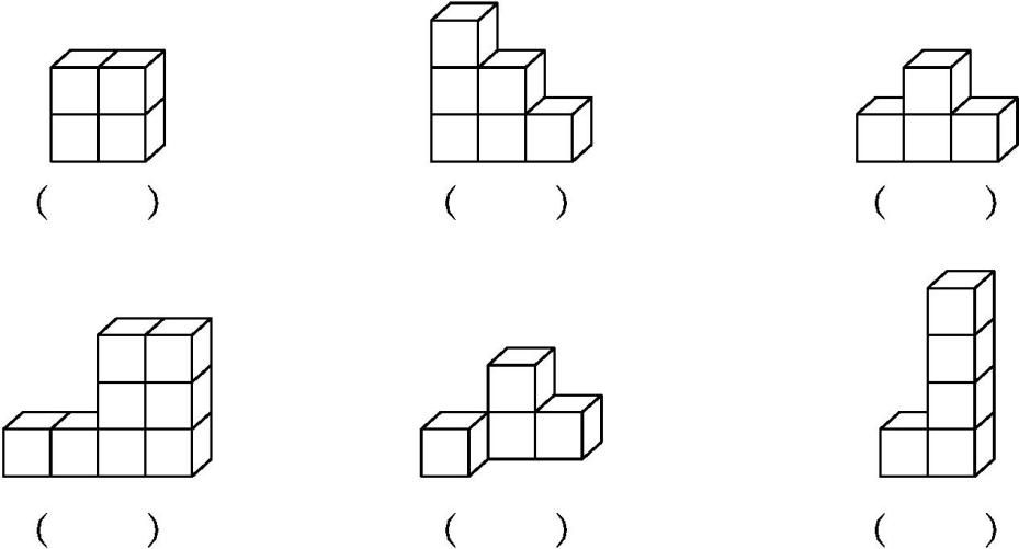 1.用5个同样大的正方体木块分别摆成下面的样子,在( )里填物体的序号。(14分)