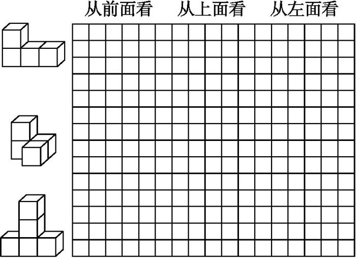 在方格纸上画出下面3个物体从前面、上面和左面看到的图形。