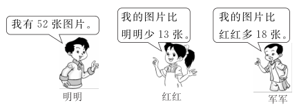 (1)红红有多少张图片?(2)军军有多少张图片?