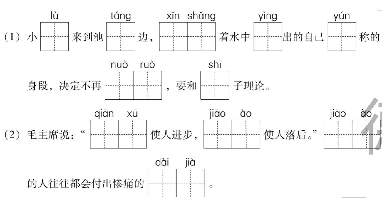 一、1.(1)鹿 塘 欣赏 映 匀 懦弱 狮