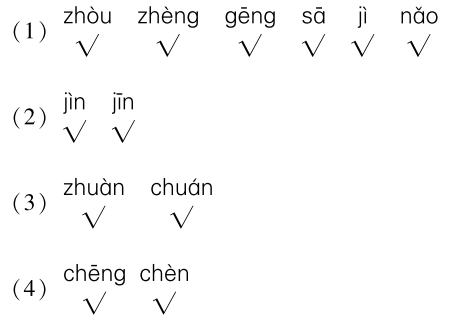 2.为划线字选择正确的读音,打上“√”。(6分)