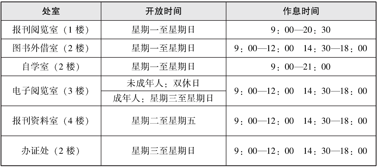 12.这座图书馆共有______层楼,每天开放时间最长的处室是________。(2分)
