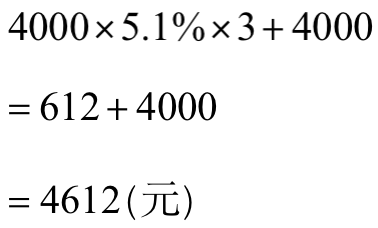 25.(6分)将4000元钱存入银行,年利率为5.1%。求三年后获得的本息是多少元?