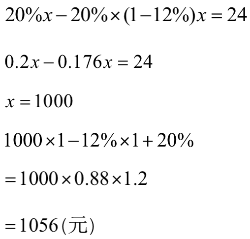 解:设乙店的进价是x元,则甲店的进价是(1-12%)x元;