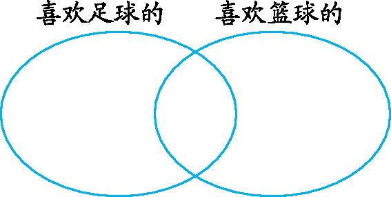 (2)一共调查了( )人,只喜欢篮球的有( )人,只喜欢足球的有( )人,两种球都喜欢的有( )人。