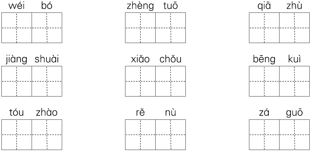 (1)拳头(quán) 胳膊(bo) 笨拙(zhuó)( )
