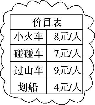 1.如果小冬想玩一次小火车和一次划船,共需多少钱?