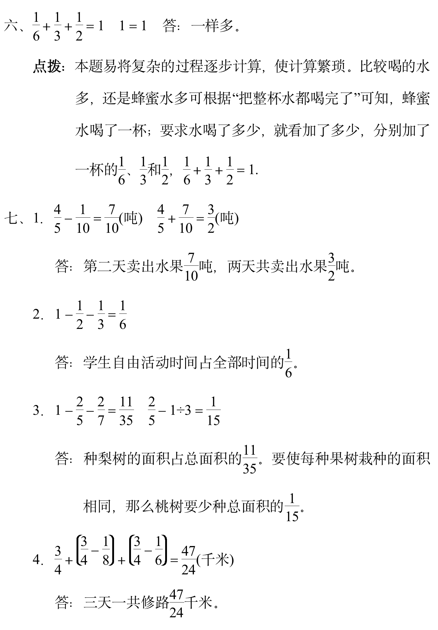 六、小红喝一小杯蜂蜜水,分四次喝完。第一次喝了这杯蜂蜜水的