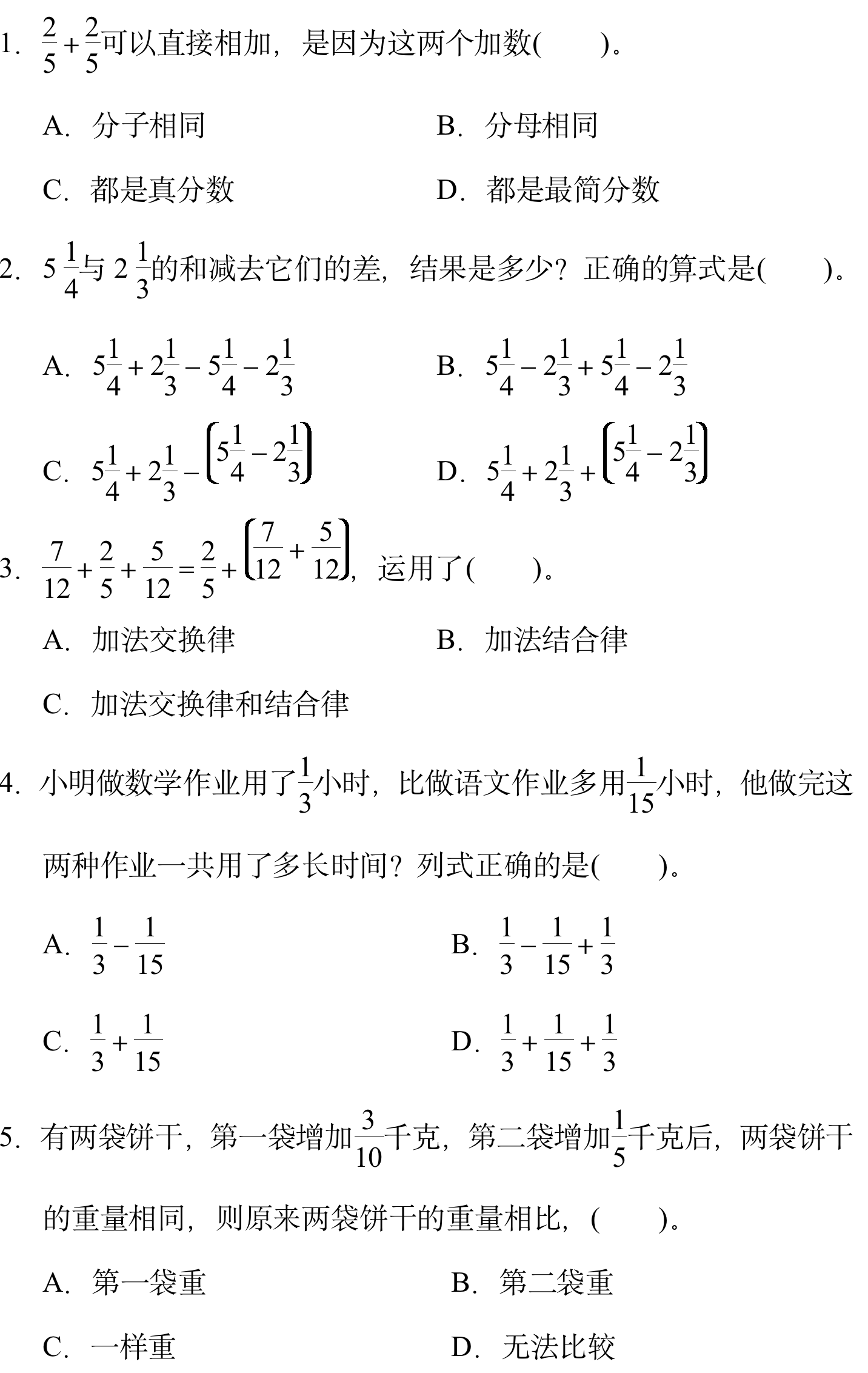 三、选择题。(每题1分,共5分)