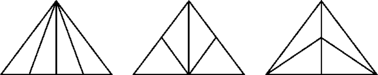 1.把一个三角形用线段分成四个面积相等的三角形。(画三种情形)(3分)