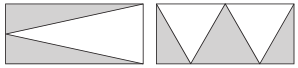 6.一块长方形铁板(见下图),从一条长边的中点到两条短边的中点分别连一条线,沿这两条线剪下两个角,剩下图形的面积是多少?(单位:cm)(6分)