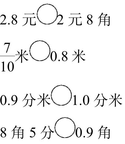 三、写出阴影部分表示的小数并比较大小。(6分)