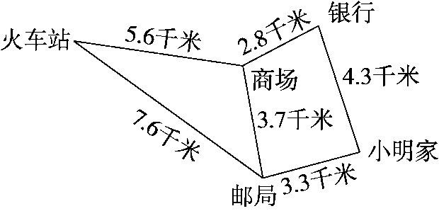 (2)从邮局到火车站走哪条路最近?是多少千米?