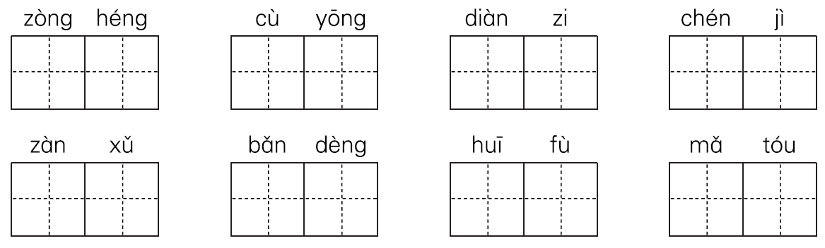 2.纵横 簇拥 垫子 沉寂 赞许 板凳 恢复 码头
