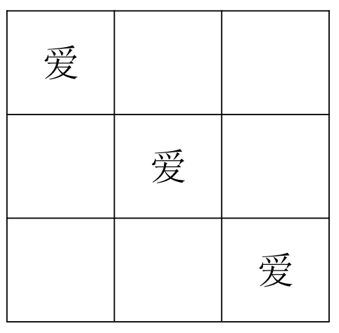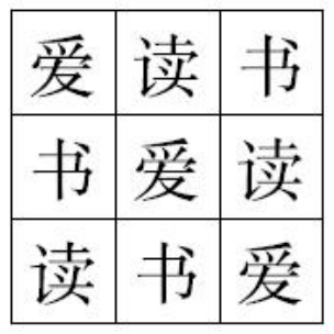 6.下图的方格中每行、每列都有“爱读书”这三个字,并且每行、每列的字都不一样,请把方格补充完整。