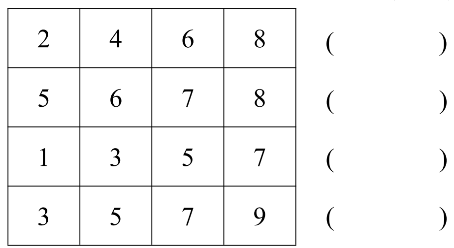 五、哪一行与其他三行不同?请找出来,在()里画✔️。(4 分)