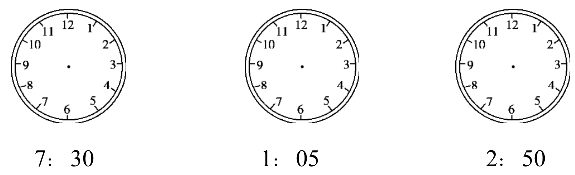 2.当时针走过4,分针指向7,这时钟面上的时间是( )。