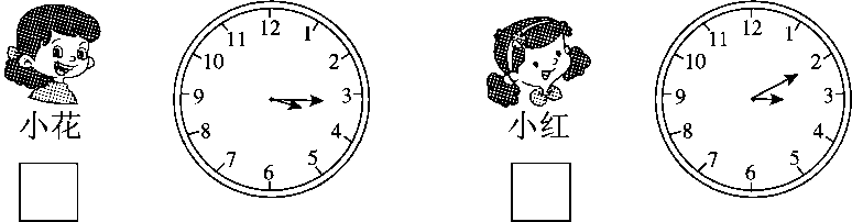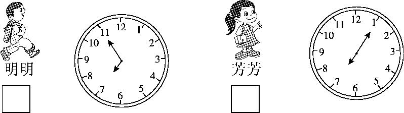 1.在去得早的小朋友下面画“√”。