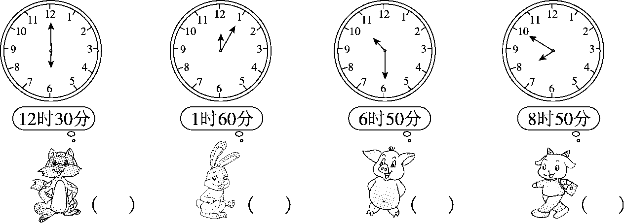 4.时针走1大格,分针正好走1圈,所以1小时是( )分。