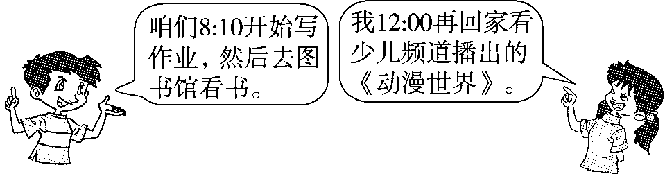九、(变式题)他们可能在什么时间去图书馆看书?圈一圈。(5分)