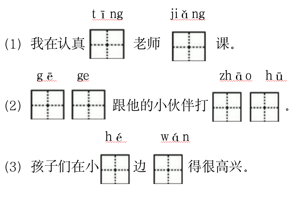 2.(1)听 讲 (2)哥哥 招呼(3)河 玩