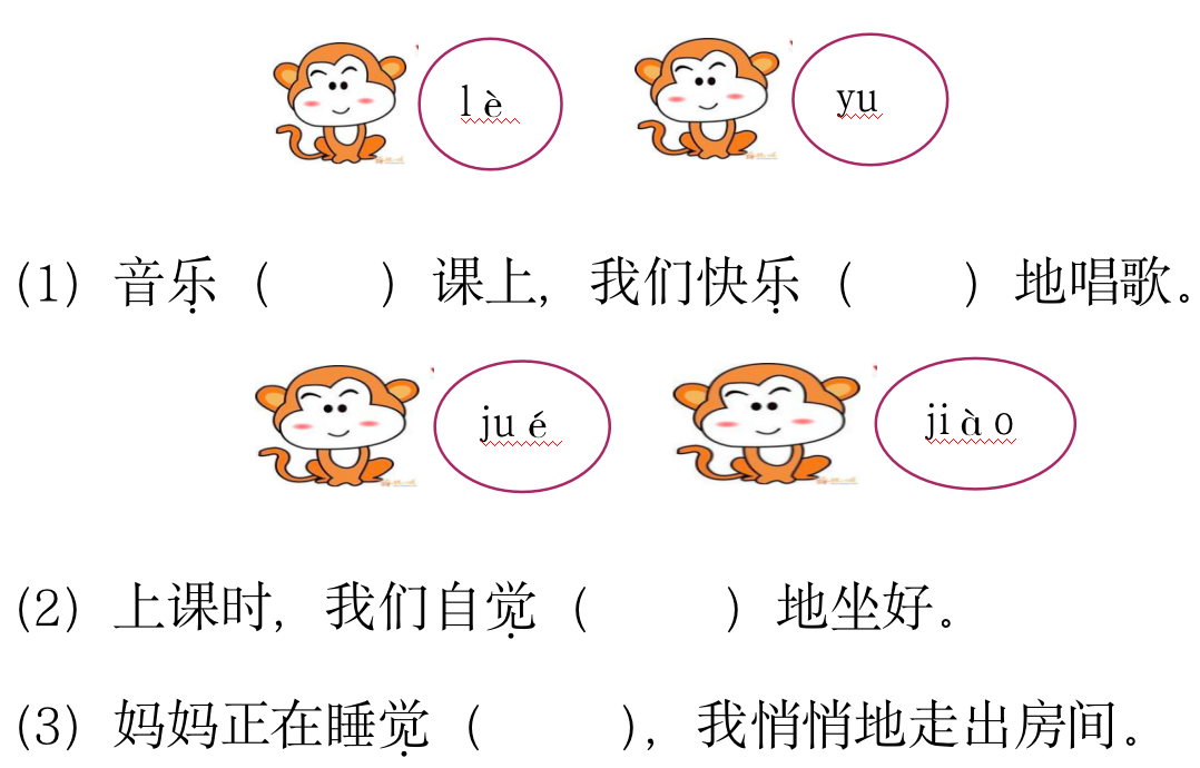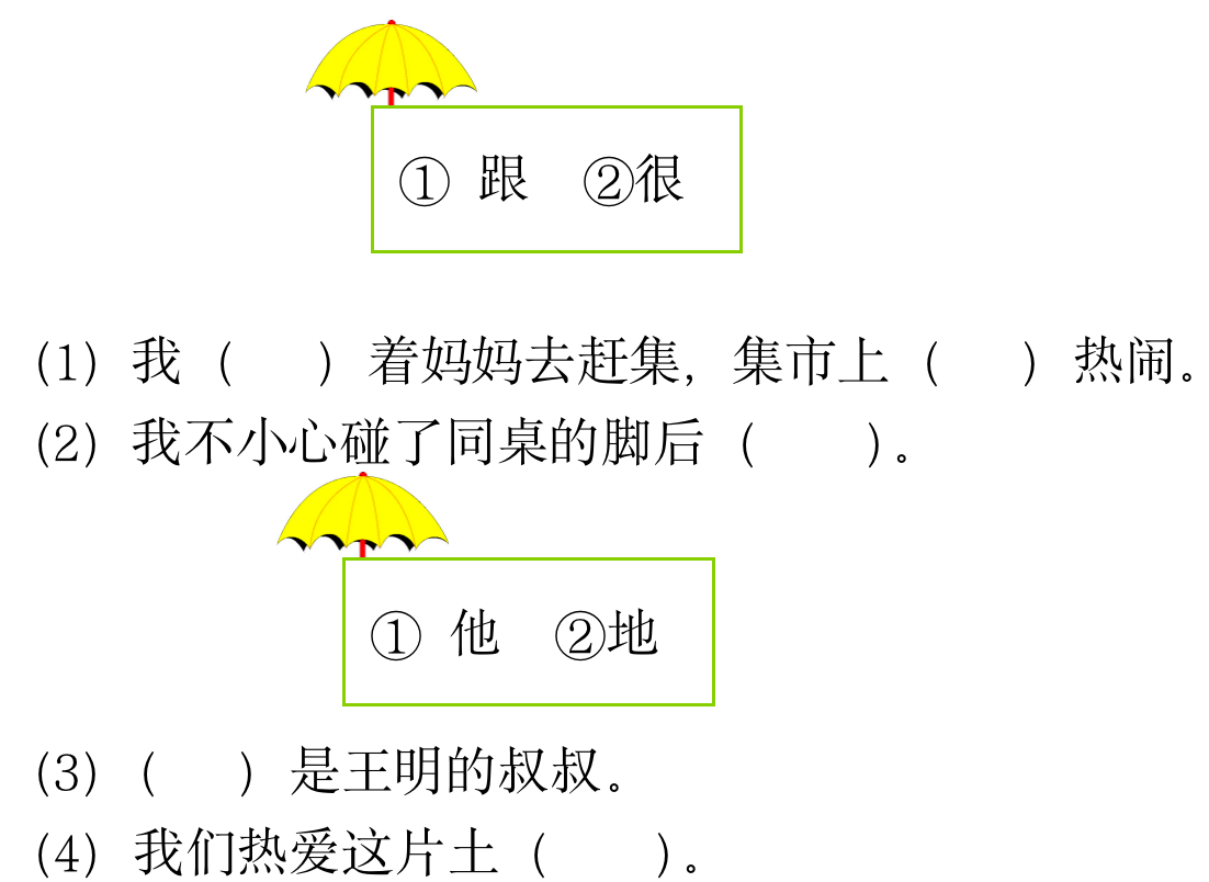 (1) ①小公鸡跟在小鸭子后面,也下了水。( )