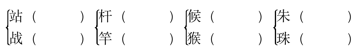 3.战斗(车站) 竹竿(一杆枪) 猴子(时候) 珍珠(朱红)