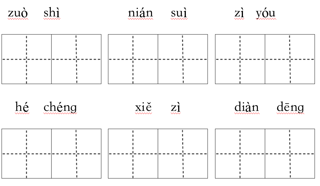 2.做事 年岁 自由 合成 写字 电灯