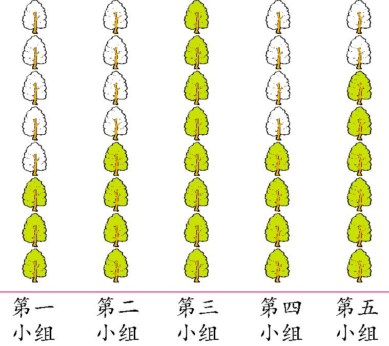七、一(1)班五个小组在植树节植树的情况如下(左图)。