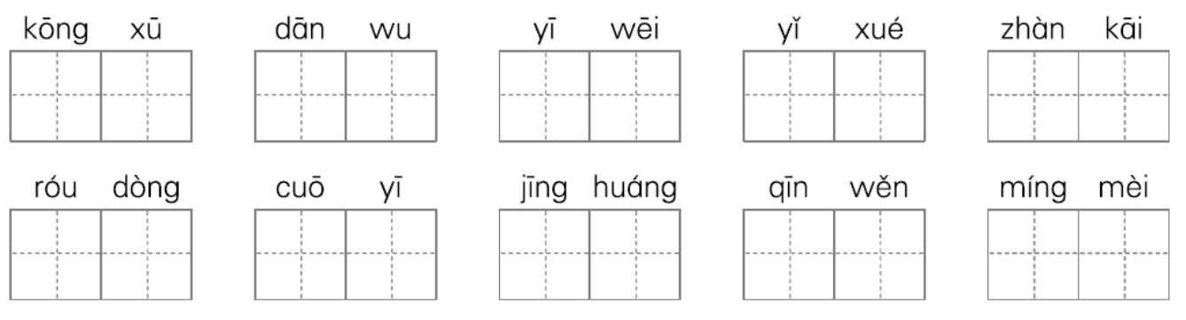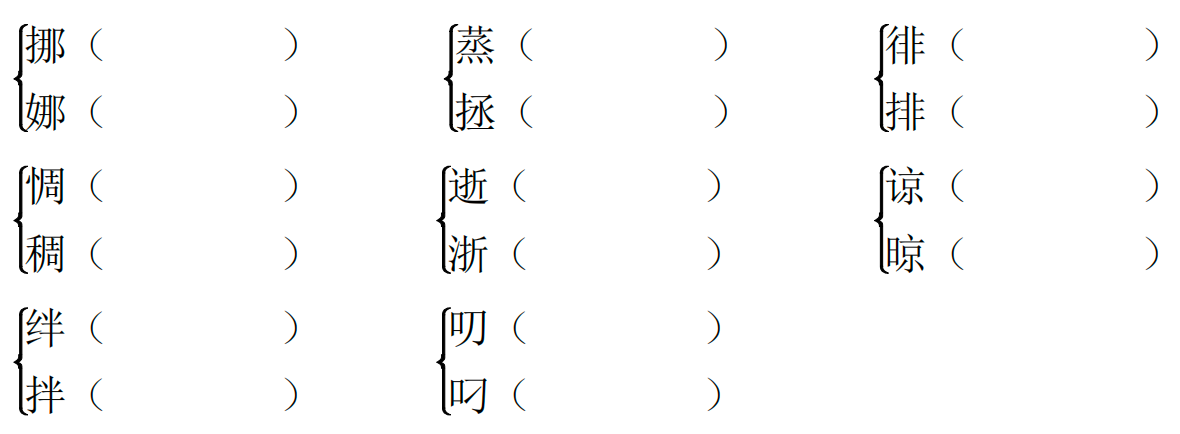 二、空虚 耽误 依偎 蚁穴 绽开揉动 搓衣 惊惶 亲吻 明媚