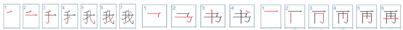 3.写(xiě)出(chū)下(xià)列(liè)字(zì)的(de)笔(bǐ)顺(shùn)。(9分)