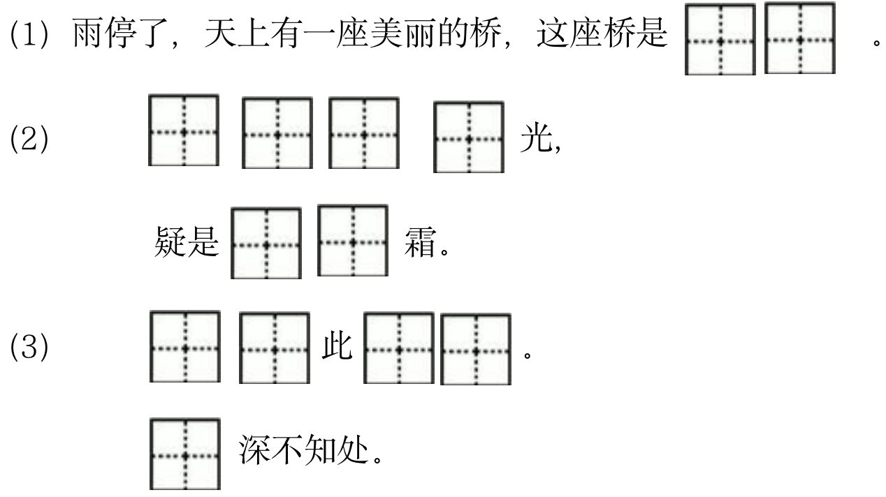 8.(1)彩虹 (2)床前明月 地上 (3)只在 山中 云