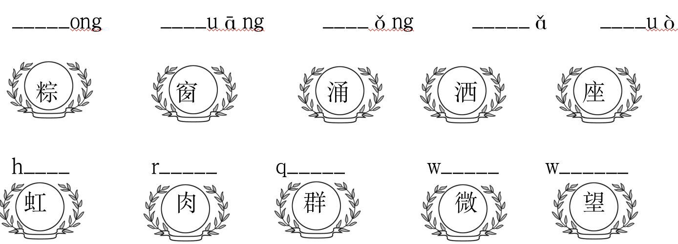 1.把(bǎ)下(xià)列(liè)字(zì)的(de)音(yīn)节(jié)补(bǔ)充(chōnɡ)完(wán)整(zhěnɡ)。(5分)