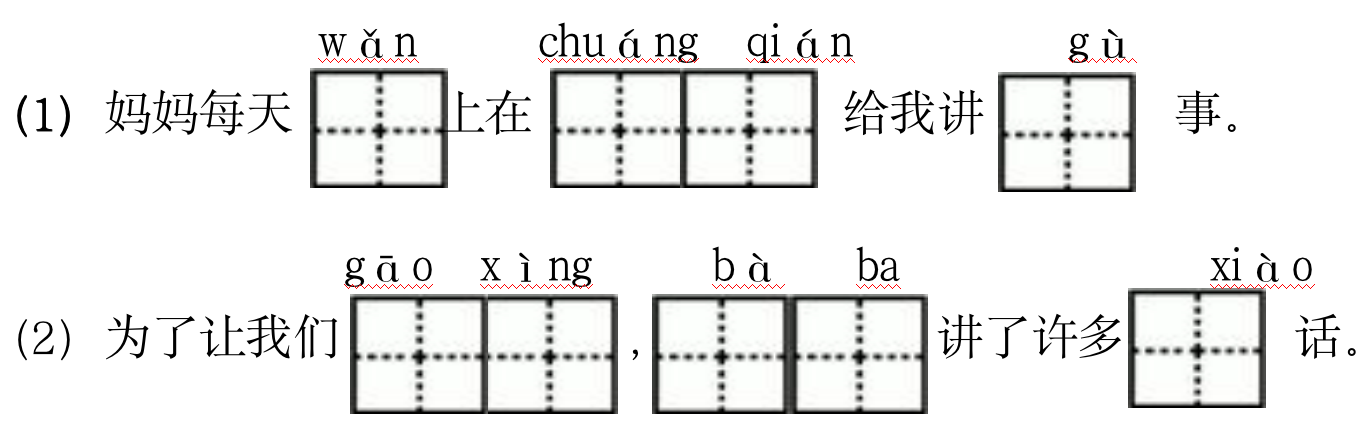 2.(1)晚 床前 故(2)高兴 爸爸 笑