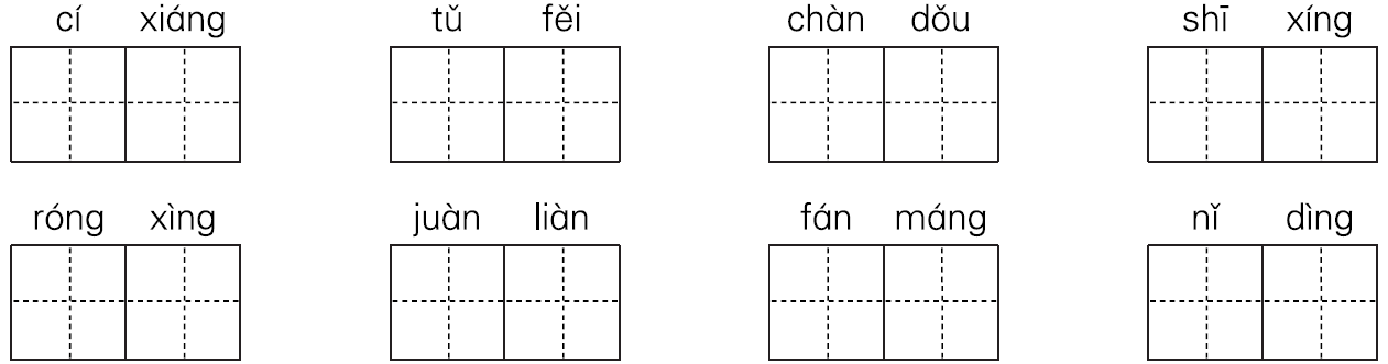 2.慈祥 土匪 颤抖 施行 荣幸 眷恋 繁忙 拟定