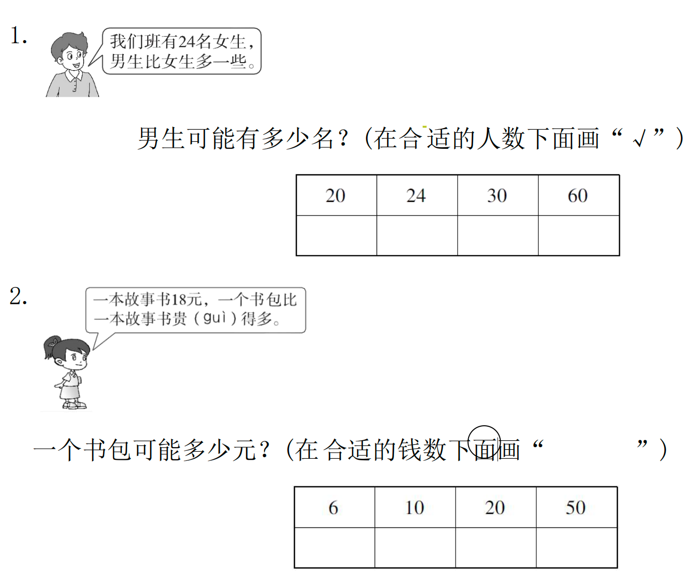 2.希望小学二年级 6 位老师带 40 个学生去博物馆参观。他们选择哪辆车合适?