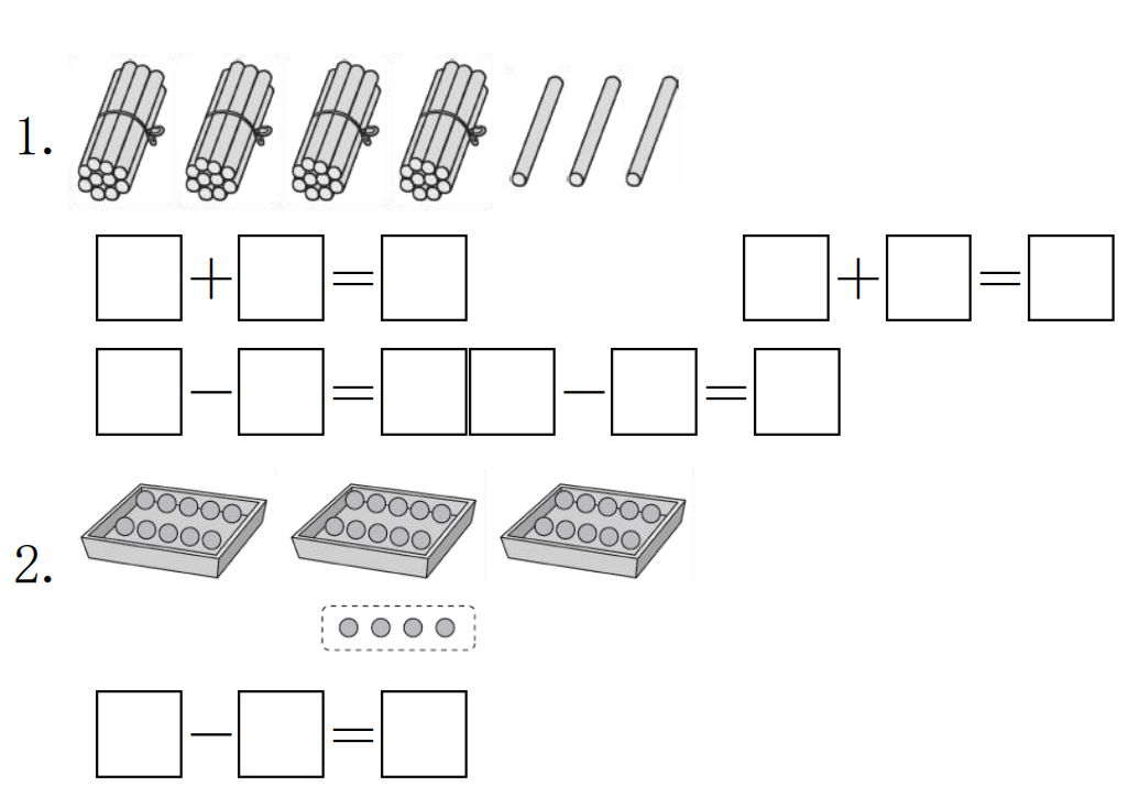 1.先圈一圈,再回答问题。38 块糖,每 10 块装一盒,能装满几盒?