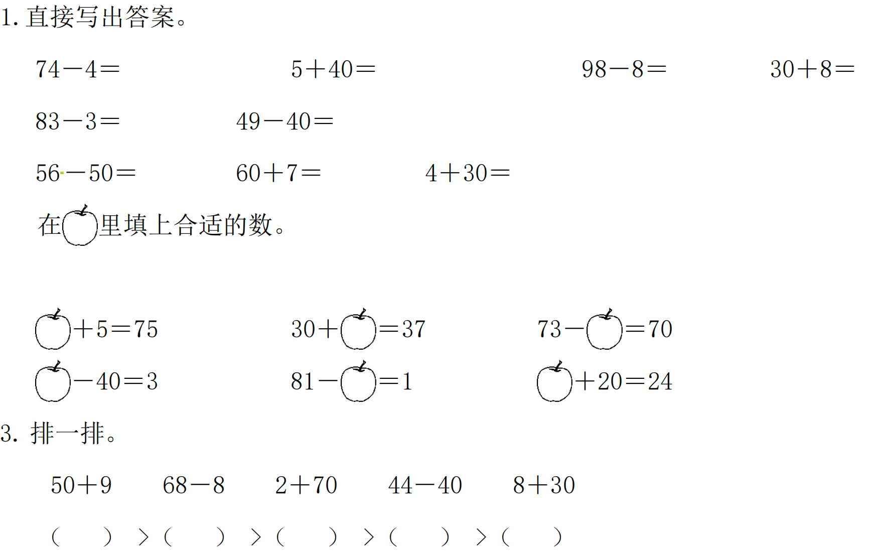 3.和 70 最接近的数是( )。