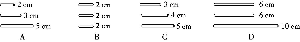 1.下面( )组中的三根小棒不能拼成一个三角形。