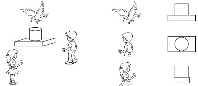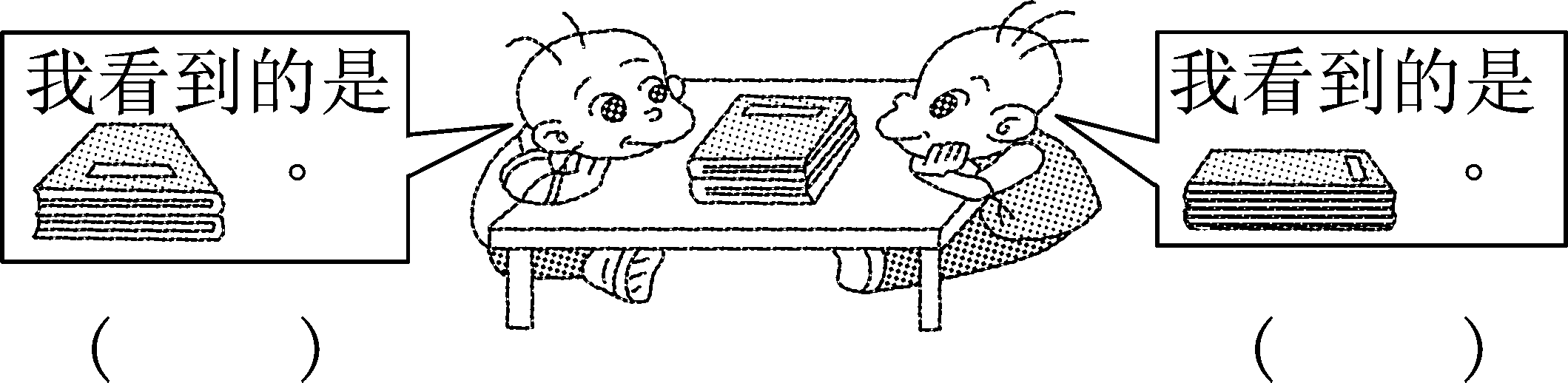 (2)下面右边的三幅图分别是谁看到的?