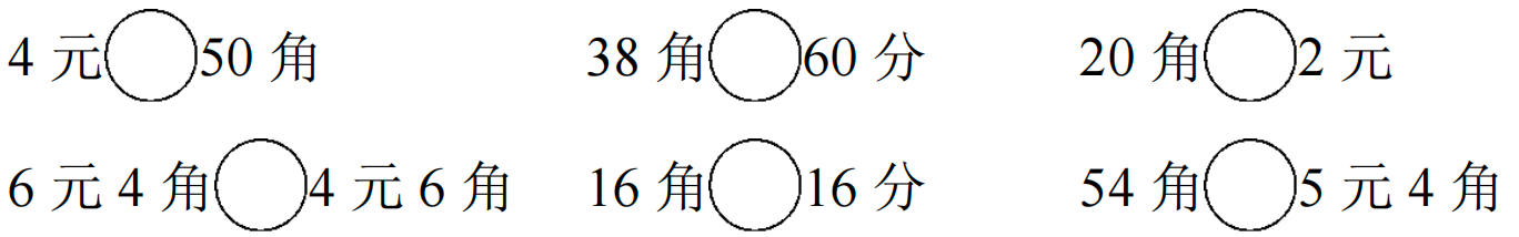 6. 在()里填上合适的单位“元”“角”或“分”。