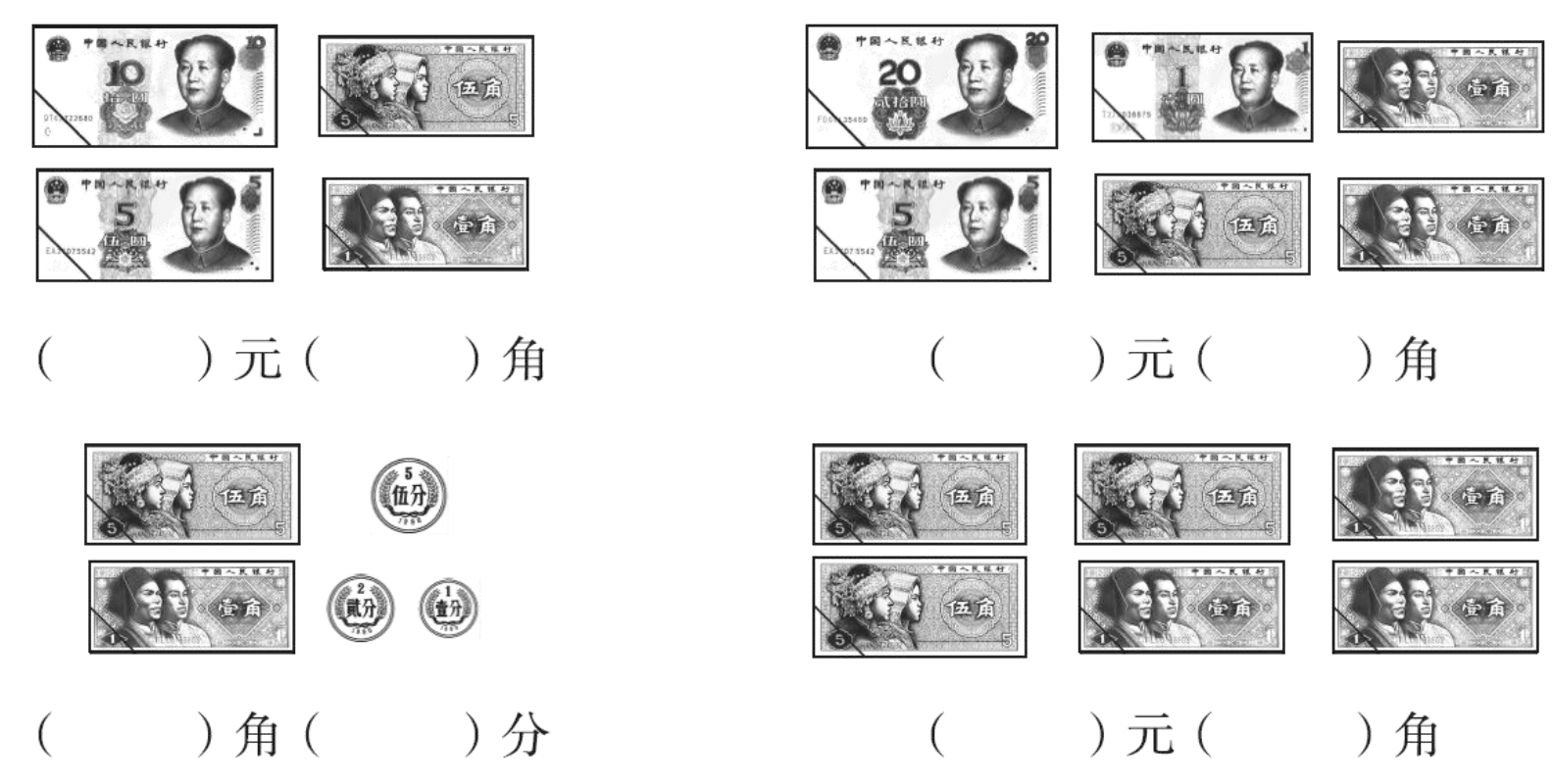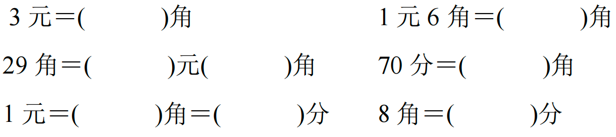 1.人民币的单位有( )、( )、( )。