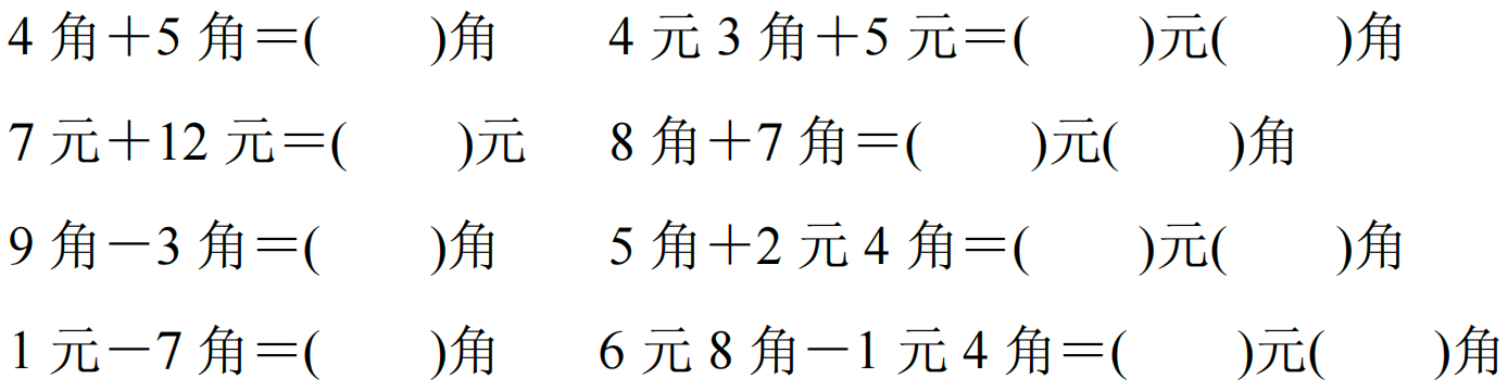 8 角+7 角=1 元 5 角