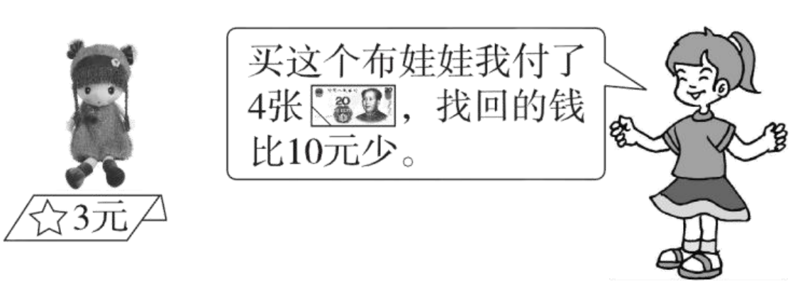 [点拨]解决这个问题先要弄清楚 4 张 20 元一共是多少钱,找回的钱比 10 元少,说