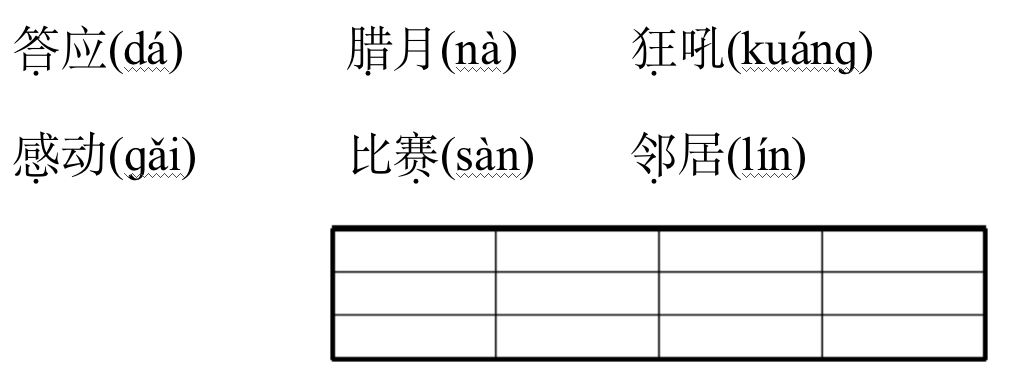 1.判断下列加点字的注音是否正确,正确的用“√”标出来,错误的在四线格里改正。(6分)