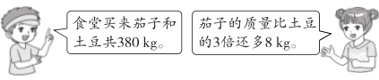 答:茄子有287 kg,土豆有93 kg。
