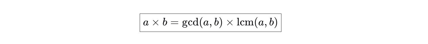 如果a和b互质(gcd=1),那么lcm(a,b)=a×b。