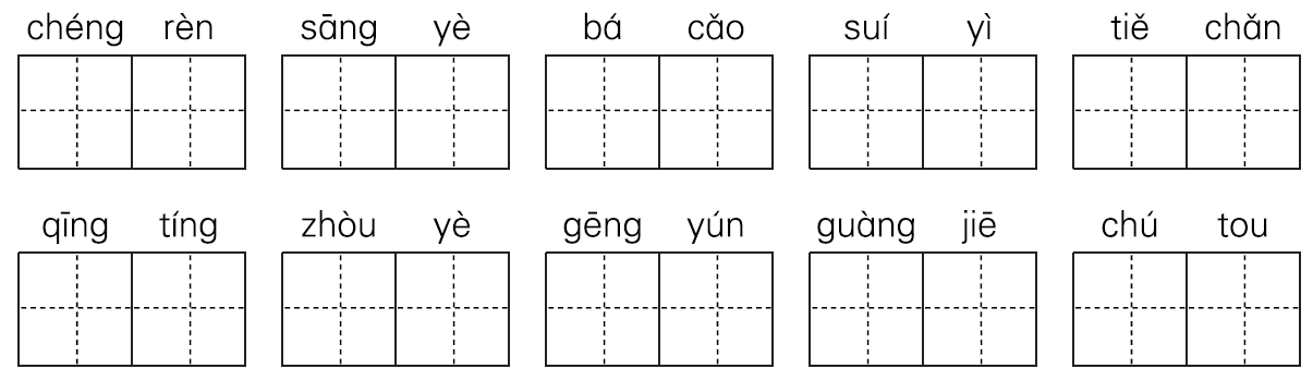 (二)13.shān,√ shàn,√ ménɡ,√ yì,√